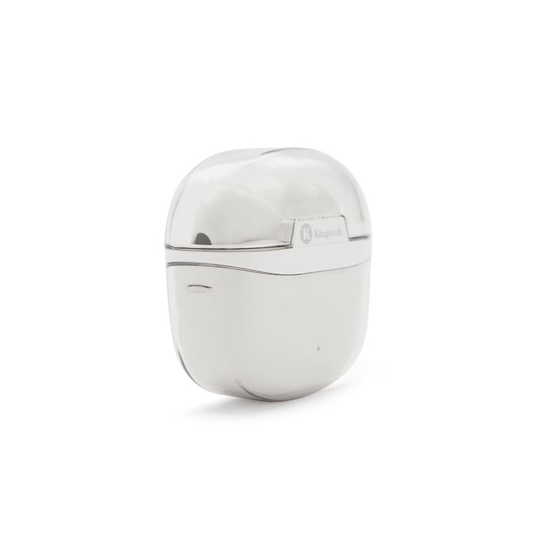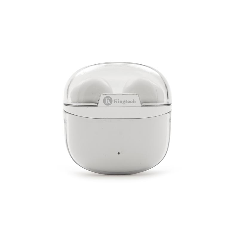 Auriculares inalámbricos con estuche de carga y micrófono incorporado. Posee tecnología bluetooth 5.0. La capacidad de carga es de 300mAh. Cuenta con cobertura bluetooth en una distancia de 10 metros y su duración en funcionamiento es de 3 a 4 horas seguidas. El tiempo de carga es de 1 a 2 horas. Medidas: 5 x 5 x 2,5 cm. Su tamaño te permite llevarlos a donde quieras y disfrutar de tus canciones favoritas donde y cuando quieras. Kingtech.