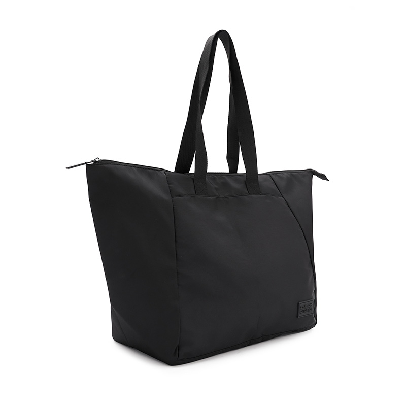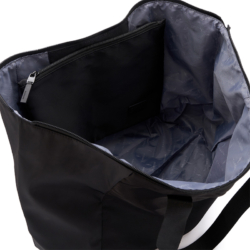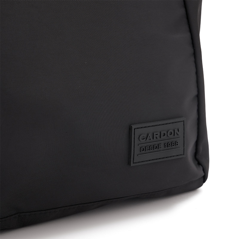 Bolso tote confeccionado en Jacquard Nylon con cierre en tono y cabezal negro. Compartimiento principal de gran apertura con cierre. Cuenta con un bolsillo trasero sin cierre. Incluye un neceser, confeccionado también en jacquard nylon, con cierres en tono. Correas para hombros confeccionadas en Polyester y Goma. Ideal para viajes y madres. Dimensiones: 36 x 58 x 22 cm (Alto x Longitud x Ancho). Capacidad: 5L. Cardon.