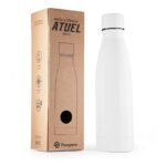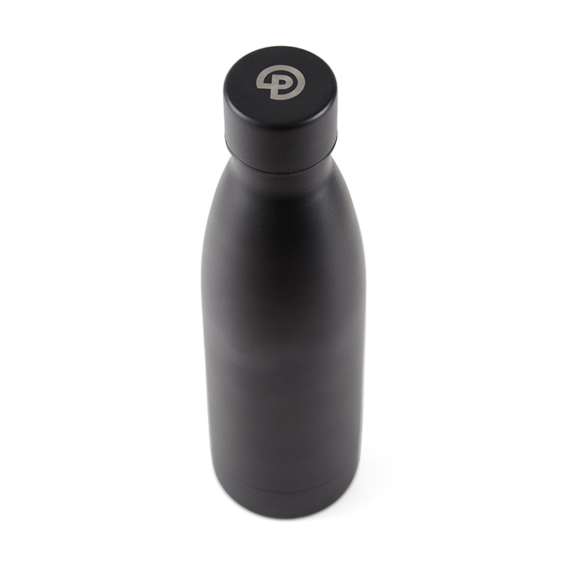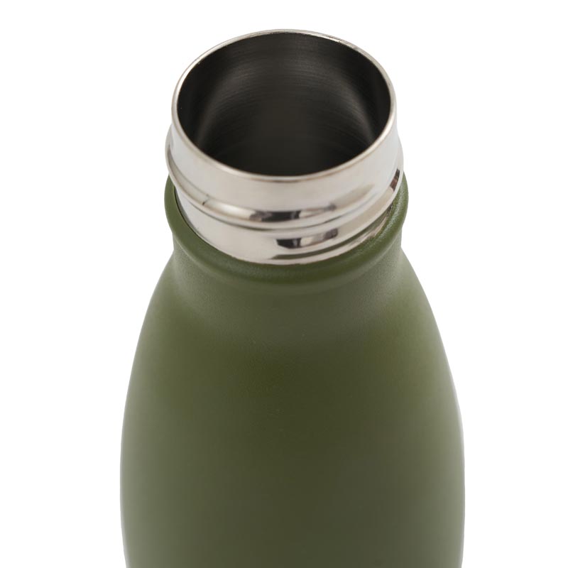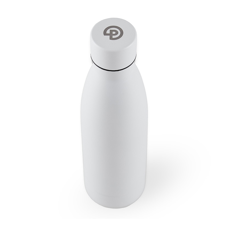 Botella reutilizable de doble pared de acero inoxidable, esmaltado en su exterior con Powder Coating. Es ideal para mantener la temperatura de la bebida: mantiene 4 horas la bebida caliente y 8 horas la bebida fría. Su tapa está confeccionada en PP, acero inoxidable y silicona para evitar derrames de líquido. Producto aprobado por el I.N.A.L. para el contacto con alimentos. Producto libre de BPA. Medidas: 25.5 cm x diámetro 6.8 cm. Capacidad: 500 ml. Presentado en GiftBox. Pampero.