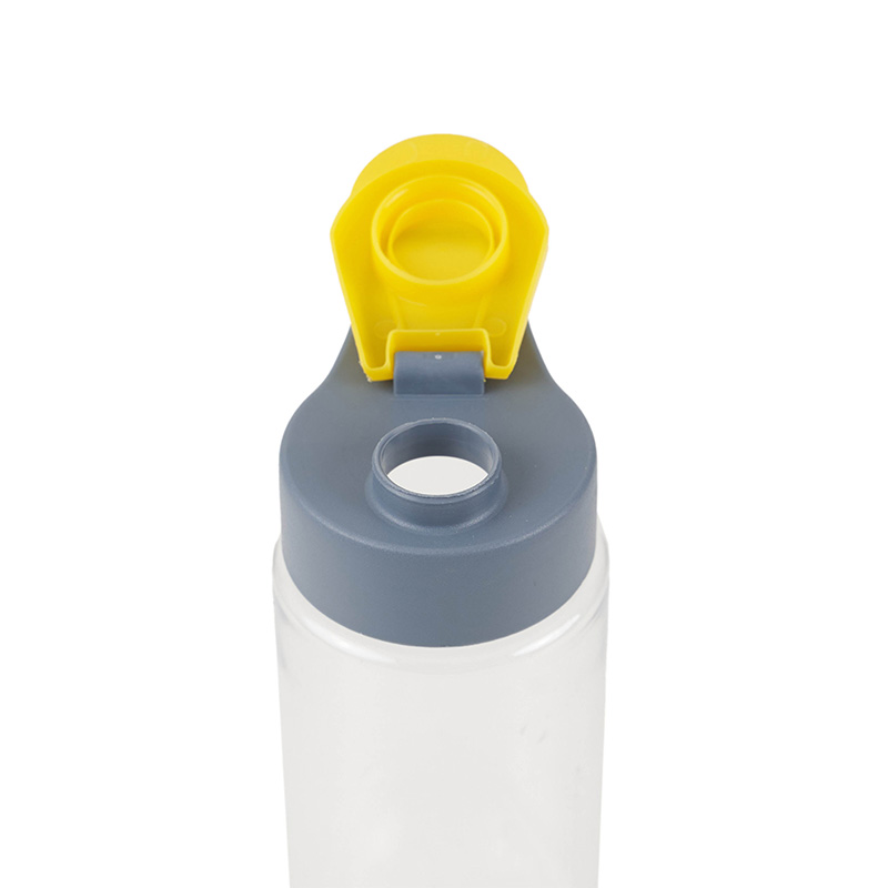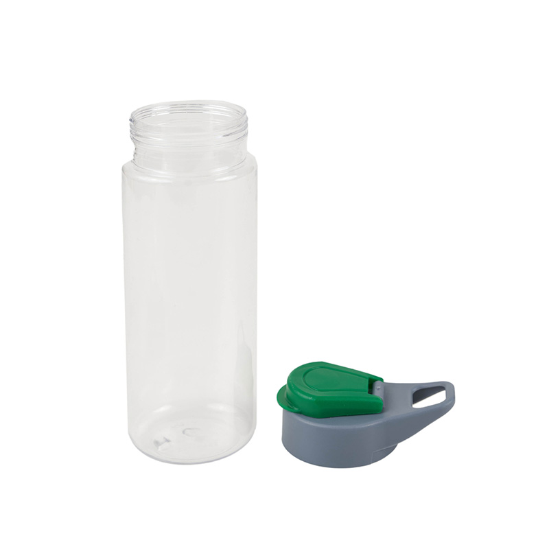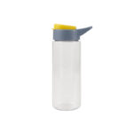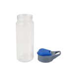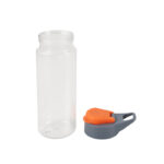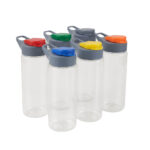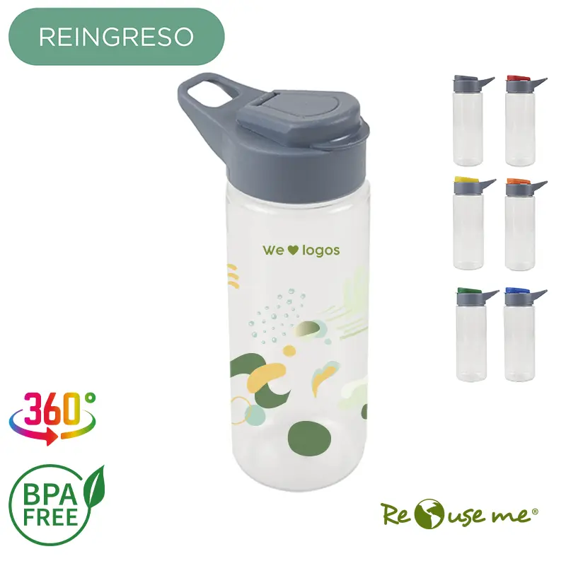 Botella transparente reutilizable de PET con tapa de Polipropileno, cuenta con un agarre en la tapa para su transporte. No es apta para bebidas calientes, lavavajillas ni microondas. Medida: 19.8 cm x diámetro 6.5 cm. Ancho de la tapa 9.2 cm. Capacidad: 600ml. ReUseMe.
