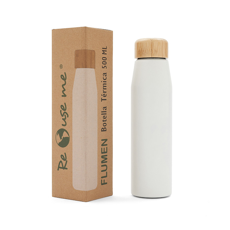 Botella de 500ml fabricada en doble pared de acero inoxidable con tapa a rosca de bamboo. Ideal para el día a día o actividades deportivas. Mantiene las bebidas frías por 8 horas y calientes durante 4 horas. Con impacto positivo en el medio ambiente, esta botella reutilizable te ayuda a reducir el consumo de plástico de un solo uso. Producto libre de BPA, aprobado por el I.N.A.L. para el contacto con alimentos. ReUseMe.