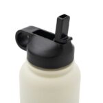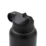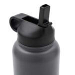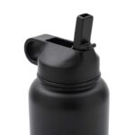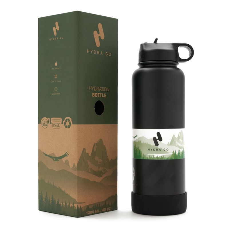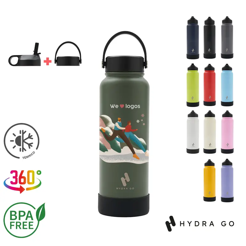 Botella isotérmica de 1200 ml, con doble pared de acero inoxidable 18/8, pintura en polvo y base de silicona antideslizante, mantiene tus bebidas frías durante 12 horas y calientes durante 8 horas. Cuenta con 2 tapas negras a rosca, para que utilices la que te resulte más cómoda: con pico y anillo para facilitar el agarre, y con manija para transportarla. Incluye 2 sorbetes y cepillo limpiador. Viene en 12 colores diferentes. Ideal para tus actividades deportivas y al aire libre. Su capacidad de 1200 ml te asegura tener suficiente líquido para hidratarte durante todo el día. El producto viene en una bolsa de PLA 100% biodegradable.