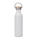Sport Bottle reutilizable de acero inoxidable AISI 304, con tapa rosca de bambú y gancho de agarre. Producto aprobado por el I.N.A.L. para el contacto con alimentos. Producto libre de BPA. Medidas: 25 cm x diámetro 7 cm. Capacidad: 700 ml. ReUseMe.