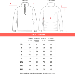 | Talle | X Small, Small, Medium, Large, X Large, XX Large, 3X Large, 4X Large |