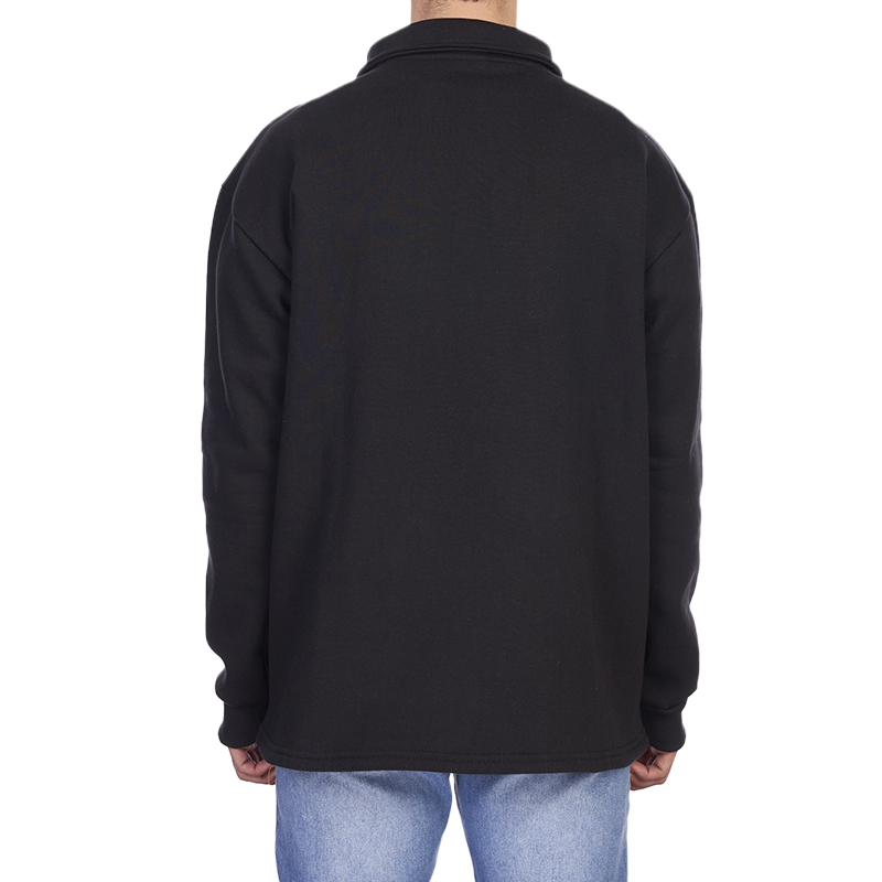 Buzo de manga larga de frisa, con cuello alto con cierre y puño en ribb. Sus costuras están realizadas en el mismo tono de tela de base. Esta prenda está confeccionada en 70% algodón – 30% poliester. Disponible en color negro y en color azul. Recomendaciones de uso para cuidar tu abrigo: Lavar a máquina a 30°. No lavar en seco. No Blanquear. No planchar. No secar en máquina. La prenda Puede encoger 5%. Pampero.