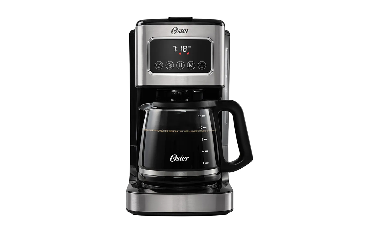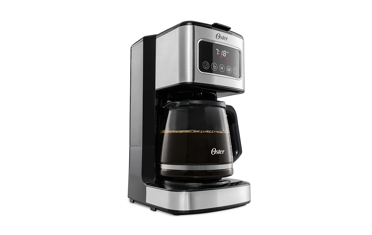 Cafetera programable de 12 tazas con pantalla táctil. Óptima funcionalidad para elegir la hora de preparación y el tipo de café, gracias a sus funciones programables.Pantalla táctil para mayor facilidad de usoFiltro de café reutilizable para un mayor ahorro y menor desperdicioFunción de apagado automático después de 2 horas para mayor seguridadPreparación programable para configurar tu café para la hora más convenienteSelector de intensidad para un café más intensoFunción de Pausa para Servir que permite parar el proceso para disfrutar de una taza de café durante la preparaciónAccesorio incluido: cuchara medidora para evitar desperdicio de caféPotencia 900W, Materiales: Aluminio, Plástico