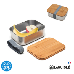 Contenedor de alimentos en acero. Posee tapa de bamboo y elástico para su correcto cierre. Dimensiones: 18 x 14 x 7 cm. Producto libre de BPA. Laguiole. Incluye GiftBox confeccionada en cartulina Kraft ¡personalizala con un mensaje especial!