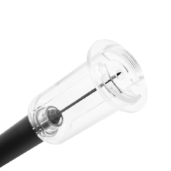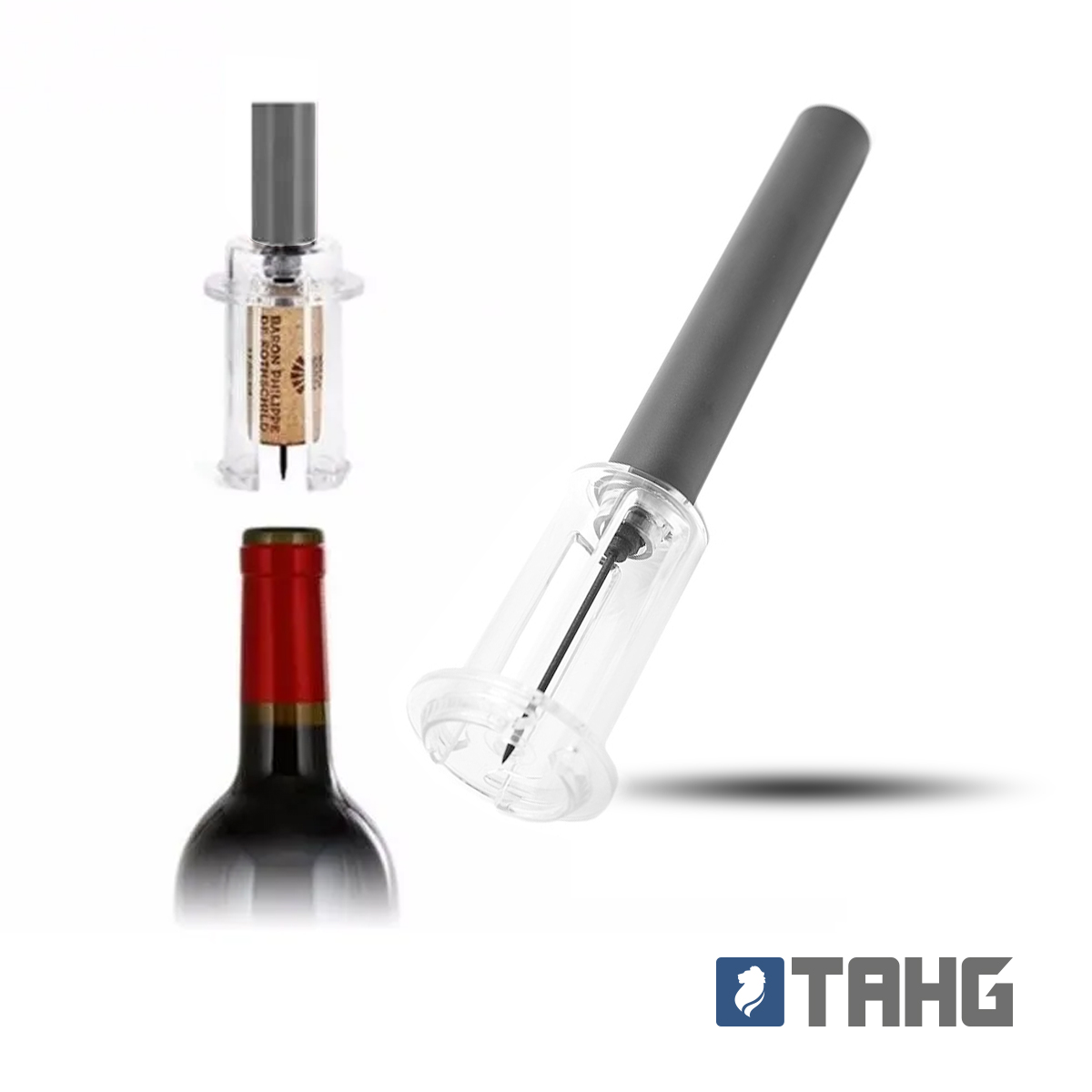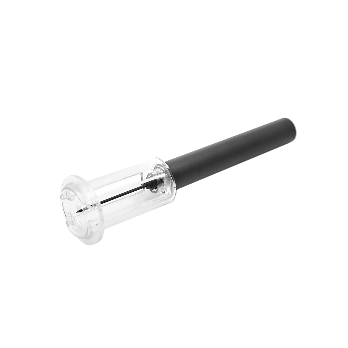 Sacacorchos neumático con caja contenedora. Se clava la aguja al corcho y se da presión al interior de la botella hasta que el corcho sale sin hacer fuerza. Medidas: Largo 19 cm. Tahg