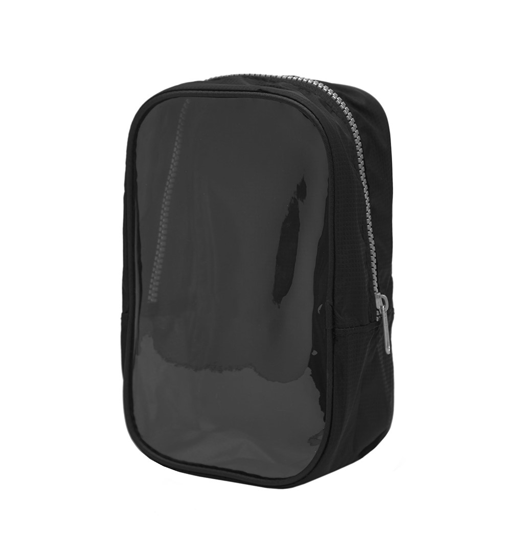 Neceser con panel frontal traslucido, el cual permite ver los productos en el interior y correa de transparente. Medidas: 22 x 10 x 13cm. Capacidad 4 Litros. Imágenes ilustrativas, no incluye los productos cosméticos. Fast Travel.