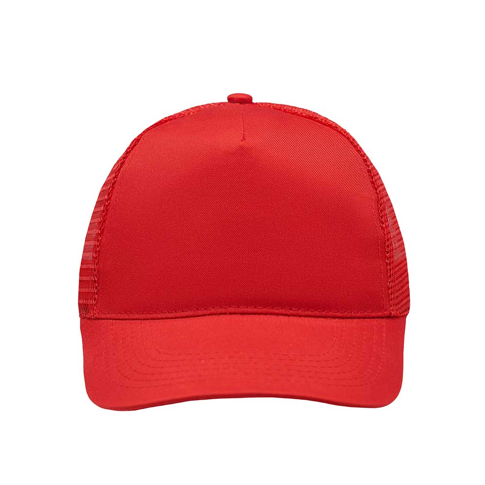 Gorro de 5 paneles en Polyester. Parte trasera con tela red. Diámetro 56 cm. Ajuste con broche plástico. Tahg.