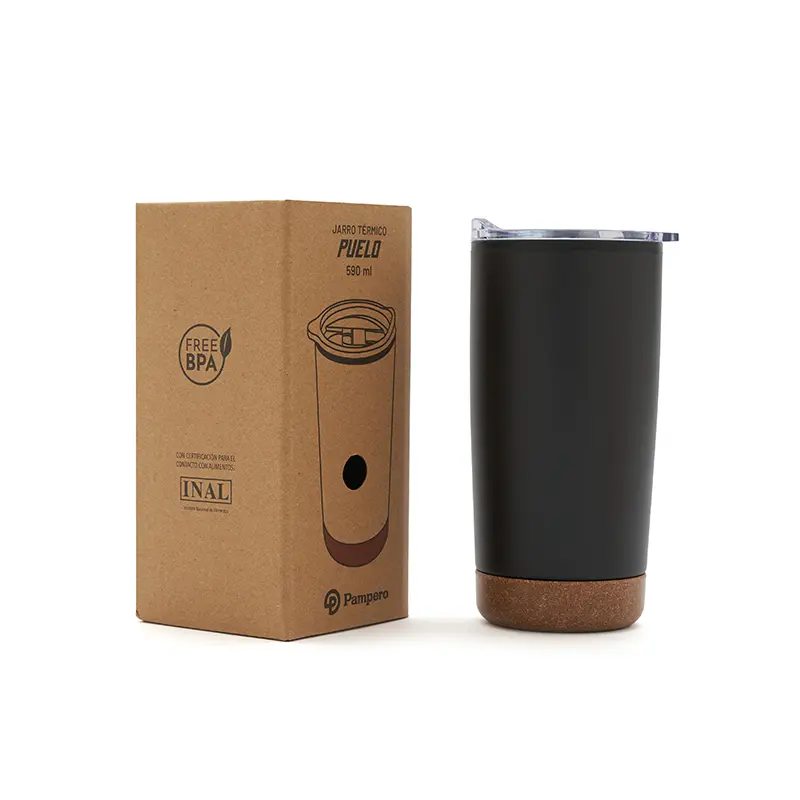 Jarro térmico realizado en acero inoxidable en su exterior, y polipropileno de color negro en su interior. Su tapa es transparente cristal clear. ¡Este jarro térmico es la elección perfecta para mantener tu bebida caliente o fría! Producto libre de BPA. Producto aprobado por el I.N.A.L. para el contacto con alimentos. Medidas: 17,5 cm x Diámetro 8.5 cm. Capacidad: 590 ml. Pampero.