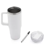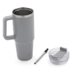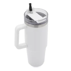 Jarro de doble pared con capacidad 887ml. Está confeccionado en acero inoxidable 304 en su interior, y su exterior en acero inoxidable esmaltado. Tapa realizada en ABS y PP, con sorbete incluido de silicona y acero inoxidable. El producto viene en una bolsa de PLA 100% compostable dentro de una caja de cartón. Ideal para uso diario. Dimensiones: 24,5 x 9 cm | 7 cm la base | 26 cm de largo sorbete. Pampa Spirit.