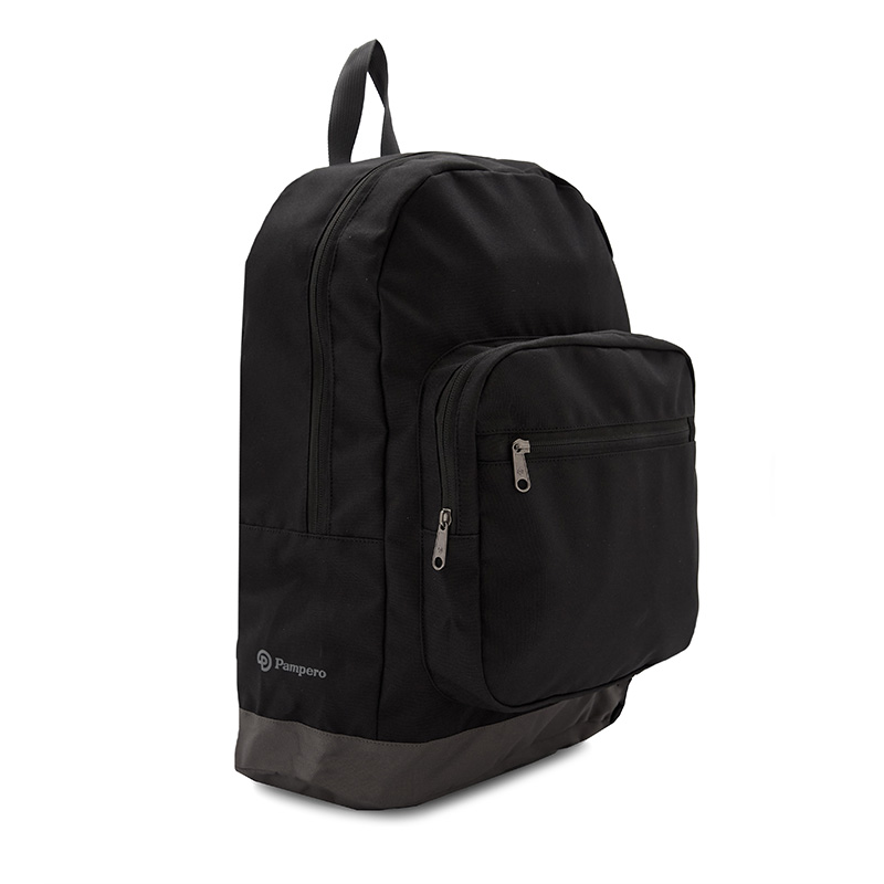 Mochila elaborada en Polyester con bolsillo acolchado portanotebook. Dos bolsillos frontales con cierre, uno simple y otro con organizador interior y llavero. Medidas: 45 x 30,5 x 17 cm. Capacidad: 24 Lts. Notebook: 17. Pampero.