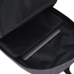 Mochila confeccionada en Polyester, con compartimiento principal para alojar notebook. Bolsillo frontal con cierre. 2 bolsillos laterales elásticos en tela de red. Correas acolchadas ajustables. Medidas: 47cm alto | 31cm ancho | 15cm profundidad. Capacidad 21 Lts. Notebook: 15,6. Tahg.