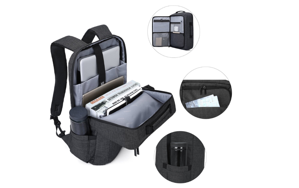 Uso bidireccional: las correas acolchadas para los hombros se pueden ocultar en el bolsillo trasero cuando se usa como maletín. Porta notebook hasta 15.6 Resistente al agua. Múltiples compartimentos. Con espuma antichoque para prevenir los impactos y proteger el interior. Poliéster 300D. Capacidad 18LTipo de Pack: Bolsa | Peso Bruto: 930 gr | Largo: 35 cm | Ancho: 5 cm | Alto: 47 cmCaja MasterUn/CM: 10 | Peso bruto: 10.28 kg | Largo: 50 cm | Ancho: 36 cm | Alto: 51 cm | Volumen: 91.8 lt. Materiales: Poliéster”