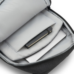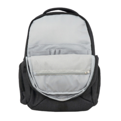 Mochila Water Resistant, realizada en Poliester, con respaldo y correas acolchadas. Tiene dos bolsillos principales, un espacio completamente acolchado para notebook, 2 bolsill