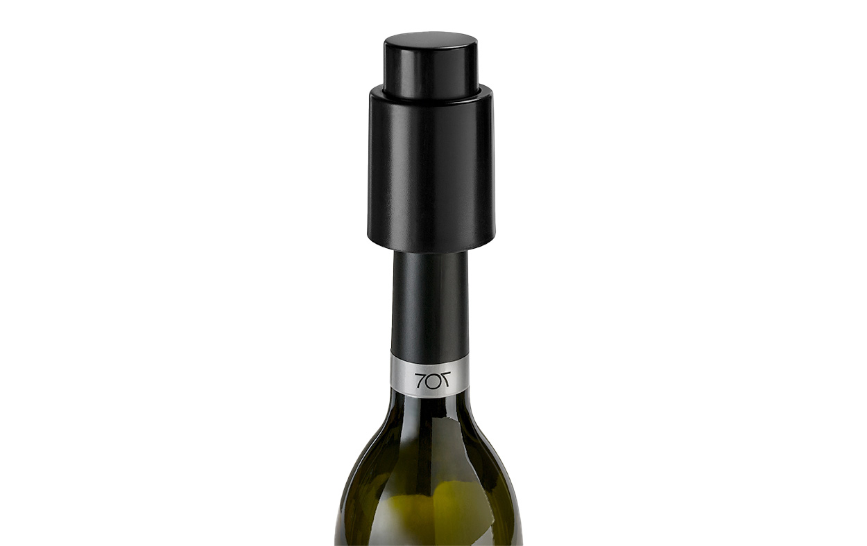 Tapón con sistema de bomba de vacío para botellas de vino. Conservación eficiente del vino una vez abierta la botella, ya que quita el exceso de aire y produce un sello hermético para evitar su oxidación. Diseño circular y fácil de colocar.Tipo de Pack: Caja | Peso Bruto: 56 gr | Largo: 4,8 cm | Ancho: 4,8 cm | Alto: 7,2 cmCaja MasterUn/CM: 200 | Peso bruto: 11,98 kg | Largo: 49 cm | Ancho: 49 cm | Alto: 33 cm | Volumen: 79,233 lt,Materiales: Plástico