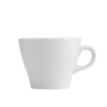 Taza de porcelana con asa. Resiste altas temperaturas.