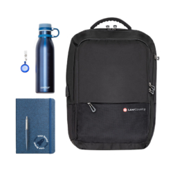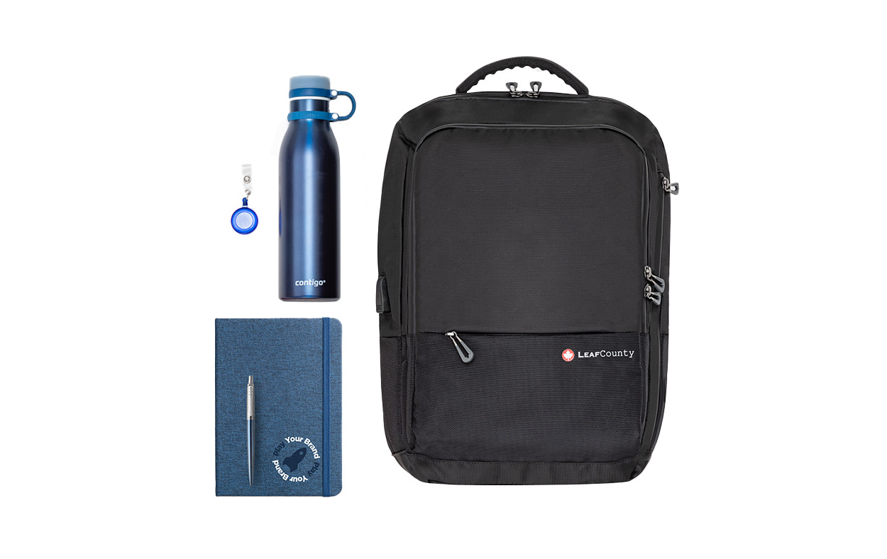 Pack de onboarding Master, ideal para ingresos de empleados. Creado para ofrecer productos prácticos y útiles para el día a día en la empresa. Compuesto por: 1 Mochila Bison Leaf County + 1 Contigo Botella Matterhorn + 1 Bolígrafo Parker Jotter + 1 Notes Stanford rPet + 1 Porta Tarjeta Extensible Translúcido.Cada producto se entrega con su packaging original.